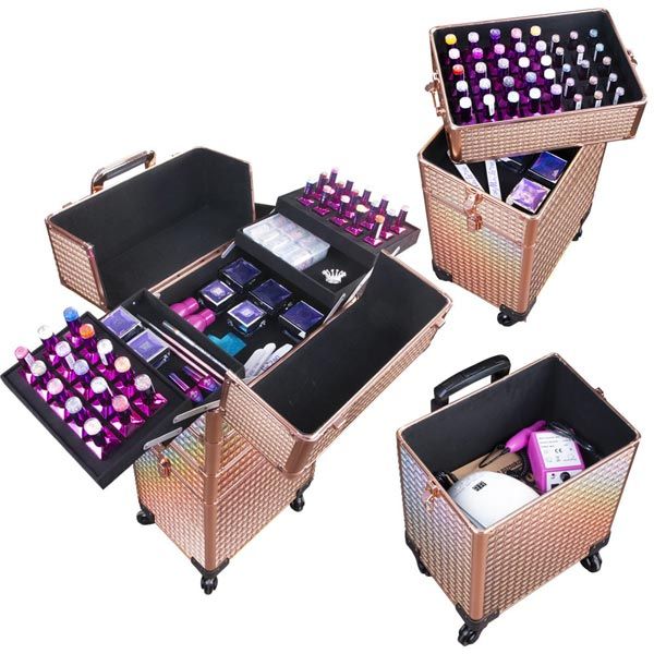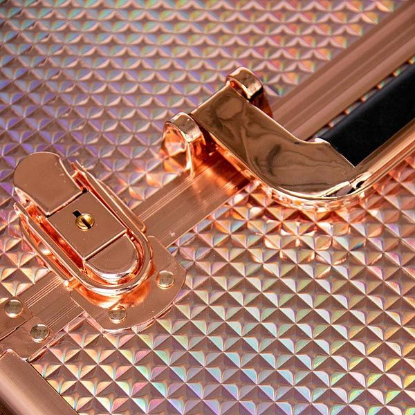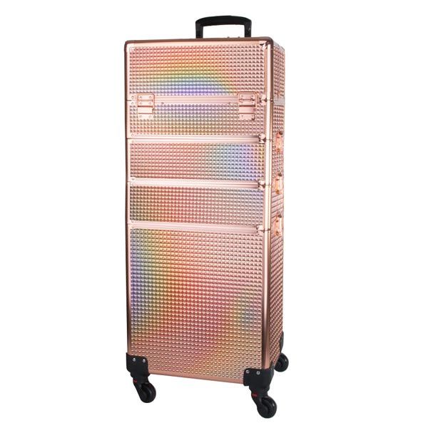 КОЗМЕТИЧЕН КУФАР XXXL 4в1 С КОЛЕЛЦА 3D КВАДРАТ РОЗОВО ЗЛАТО 95x25x35см