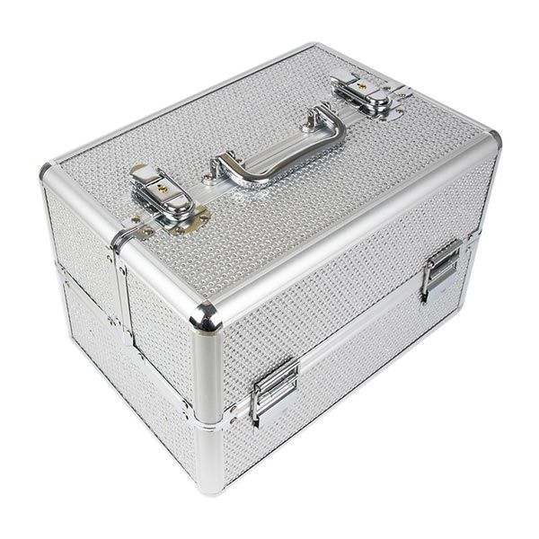 КОЗМЕТИЧЕН КУФАР M - СРЕБРИСТ С БРОКАТ 30x20x20 см