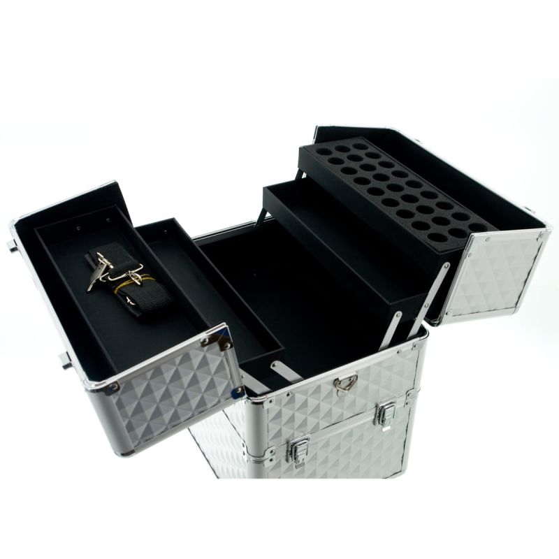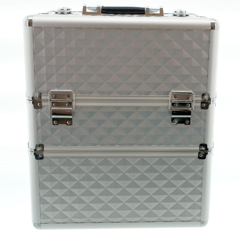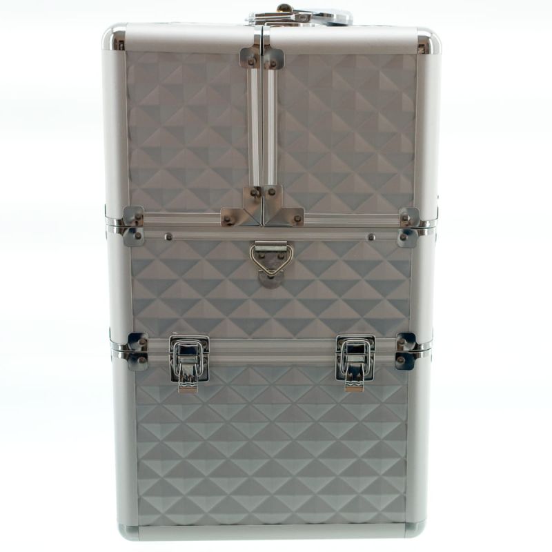 КОЗМЕТИЧЕН КУФАР XXL - 3D РОМБ - SILVER 41x24x34